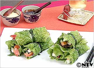 この春巻きは、ベトナム中部のフェー地方の料理、現地ではからし菜に巻いて食べるそうです。