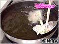 (2)大きめのスプーンにのせて、平らに広げてすべらせるようにして鍋に入れて揚げる。