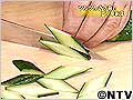 (2)切り口を上にして薄切りにすると、ちょっとオシャレな菱形に・・・。中華のあえものにはオススメです。