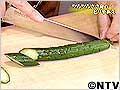 (1)板ずりしたきゅうりを2cm幅の斜め切りにする。