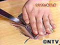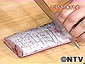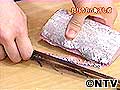 (3)皮目に5ミリ間隔に切り目を両面に入れる。