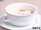 ■ 材料 ・牛乳(1+1/2カップ) ・トマト(1個) ・中華スープ (1+1/2カップ鶏ガラスープの素1個を溶く) ・ごま油(大さじ1/2) ・酒(大さじ1) ・塩、こしょう、砂糖(各少々) ・長ねぎのみじん切り(適量) ■ 作り方 鍋にごま油を熱し、くし形に切ったトマトを炒め、スープ、牛乳を加えて、煮立ったら調味料を加えて仕上げにねぎを散らします。