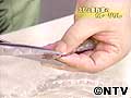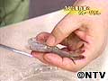 (1)はさみで背のところを縦に切り、背ワタを除く。