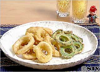 いかを揚げて残った衣で苦瓜を揚げますが、衣がからむ程度の量で充分です(少なくても気にしないで)。