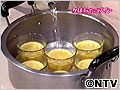 器ごと鍋に並べ入れて熱湯を注ぎ、ごく弱火で蒸す。火が強すぎるとスが立つので注意する。