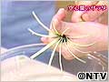 空洞になっている茎に専用のカッターを差し込んで引っ張ると、 先から細く裂ける。これを水に放すとクルクルと丸まる。 空芯菜クルクルカッターは鈴木さんのお店 「キッチン」 TEL:03-3409-5039 でも発売中。 1本1,200円