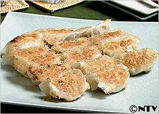 器をかぶせて、返して盛りつける。このとき熱いので無理しないこと。