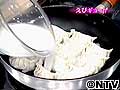 フライパンが熱くなったところに小麦粉水を流して、ふたをして強火で4分蒸し焼きにする。