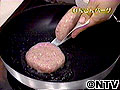 このハンバーグ、肉だねがとてもやわらかいのでオーブンペーパーの上にのせておくと扱いやすい。