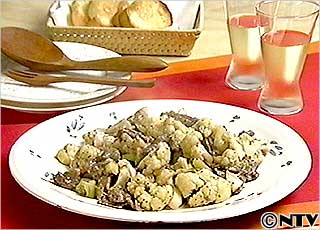 カリフラワーの下ゆでのめやす、茎の部分が透き通ったらすぐにザルに上げて水気をきります。