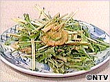 ■ 材料 ・水菜 1/2わ(200g) ▼ ソース ・ピーナッツバター 大さじ3 ・砂糖 大さじ1 ・ナンプラー 大さじ1 ・豆板醤 小さじ1 ・レモン汁 1/2個 ・水 大さじ1/2~1 ■ 作り方 (1)水菜は5~6cm長さに切る。かぶは皮をむいて薄い輪切りにする。 (2)ソースを作る。ピーナッツバターに砂糖、ナンプラー、豆板醤、レモン汁を順に加えてよく混ぜ、水を少しずつ加えてのばす。 (3)水菜とかぶを合わせて器に盛り、(2)のソースをかけて食べる。