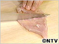 縦に切り目を入れ、身が薄くなるように左右に開く。