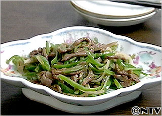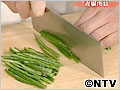 ピーマンは縦半分に切って種を除き、上下を切り落とし、縦に3mm幅のせん切りにする。