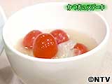 ■ 材料 ・じゃが芋(1個) ・プチトマト(12個) ・玉ねぎ(1個) ・スープ(3カップ) ・塩、こしょう(各少々) ■ 作り方 (1)じゃが芋はいちょう切りにして水にさらし、玉ねぎはせん切りにします。プチトマトはヘタをとっておきます。 (2)鍋にスープを煮立て(1)を加えて煮、じゃが芋に火が通ったら、プチトマトを加えてひと煮し、トマトの皮がはじけてきたら塩、こしょうで調味します。