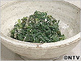 ■ 材料 ・春菊(1わ) ・かぼちゃのたね(おつまみ用) ・だし汁(大さじ2) ・砂糖(大さじ1) ・しょうゆ(大さじ1/2) ■ 作り方 (1)春菊は塩を加えた熱湯でさっとゆで、水にとり、水気を絞って4~5cm長さに切ります。 (2)かぼちゃのたねをすり鉢でよくすり、だし汁と調味料を加えてさらに加えてさらにすり混ぜ、(1)を加えてあえます。