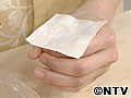 親指と人指し指でリングをつくった上にシューマイの皮をのせる。