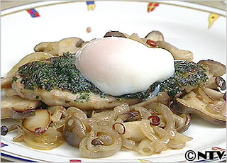 豚肉はパセリをぬった面をさっと焼いて返し、中まで火を通します。