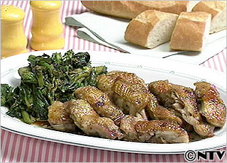 焼きあがりの熱いうちにソースをかけてなじませます。(鶏肉が天板にのっているところにかける)