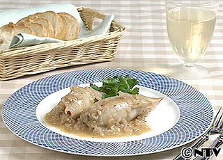 (1)胴から腹わたと足をはずし、軟骨もとり除く。水洗いし(胴の中も)、ペーパーで水気をよくふく。