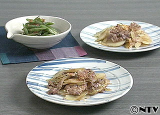 ■ 材料 ・いんげん(1束) ・梅干し(1個) ・削りがつお(1袋) ・しょうゆ(少々) ・ごま油(大さじ1) ■ 作り方 (1)いんげんは熱湯でゆで、冷水にとり、斜め切りにし、梅干しは種を除いてたたきます。 (2)ボールに叩いた梅干し、しょうゆ、ごま油を加えて混ぜ、削りがつお、いんげんを加えてあえます。