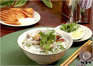 フォーのスープは鶏肉や牛肉がポピュラーですが、あさりは短時間でとれるのでお手軽です。