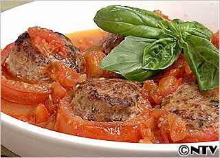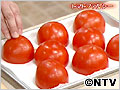 トマトは中身をくり抜き、トマトは伏せて余分な汁をきり、ヘタと中身は刻んで一緒に煮こみます。。