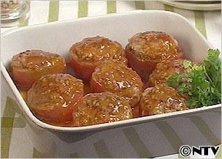 トマトは小ぶりのものを求め、横半分に切ってヘタの硬いところは除き、ケースにします。