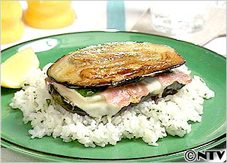 米なすのチーズサンド焼き バジルライス添え
