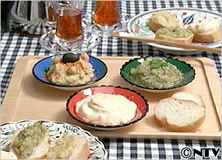 フムス(ひよこ豆のムース) パトゥルジャン サラタス(なすのサラダ) タラマ サラタス(たらこのサラダ)