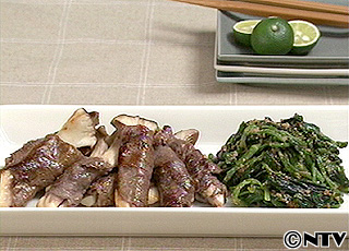 牛肉は下味をまぶした面が内側になるようにエリンギに巻きつけます(小麦粉はのりの役目)。