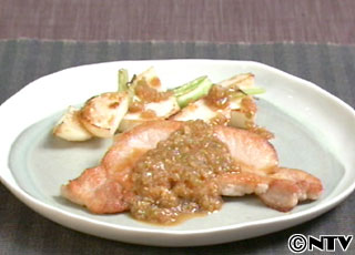 かぶは歯ざわりを残したいので、火を通しすぎないこと、かぶにも香味ソースをかけて食べます。
