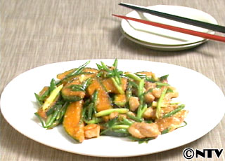 かぼちゃと鶏肉の甘みそ炒め