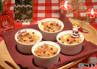 ミニクロワッサンなら4個、普通のクロワッサンなら1個を使う。焼けた表面が多い方がおいしいので、ミニがあればそちらを使う。食パンやバゲットで作る場合はカリッとトーストしてから使う。