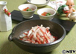 大根もにんじんも太めのせん切りにし、にんじんの量は少なめに。