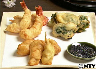 揚げる順番は、まずはささ身から、えびとブロッコリーは同時に入ってもOK。