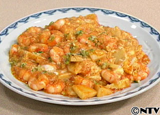 えびやたけのこをたっぷりの油で炒めますが、いったん使った油をあけ、火を止めて薬味を炒めます。
