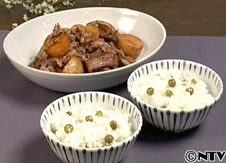もう一品のポイントは、牛肉は煮すぎないこと(さっと炒めて取り出す)、柔らかく煮えた新じゃがの表面に竹串で穴を開けて牛肉のうま味を吸わせるようにからめること。