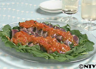 かつおを焼いて取り出し、粗熱をとっている間にソースを作ります。