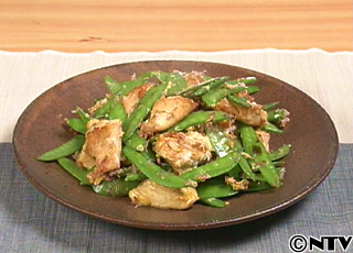 絹さやは水気が少しついた状態で炒めると蒸気が上がって早く火が通ります。