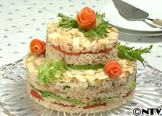 重ねる順番は自由です。セルクルをはずした側面をイメージしてつめましょう。