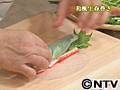 まな板の上に広げ、まず大葉の表を下にしてのせて万能ねぎ、長芋、ささ身をのせる。