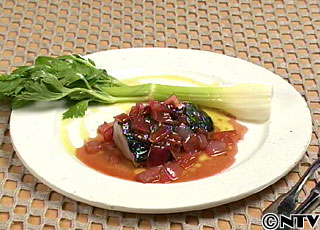 かつおの赤玉ねぎソース