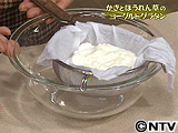 プレーンヨーグルトは水通しのよいペーパータオルを敷いたザルに入れ、絞らずにそのままおいて自然に水気を切る。