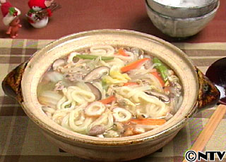 冷凍うどんは下ゆでしないでそのまま加えて火を通します。