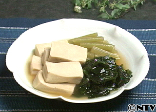 高野豆腐を煮るときは、あらかじめ調味料をだし汁と合わせたところに入れて煮ること(煮ている途中に、しょうゆを加えてはマーブル状に煮あがってしまいます)。