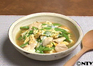 絹さやと鶏肉の卵とじ