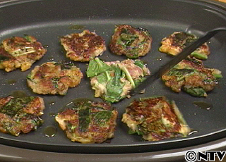 おろしたじゃが芋の色が変わらないうちに具を混ぜ合わせます。