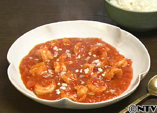 えびの背を開いておくと、チリソースがからみ易くなります。