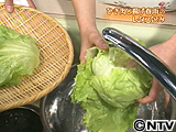 レタスは無理にはがすと葉が破れてしまうので、芯の中に流水をかけながらはがすとよい(水の重さで自然とはがれていく)。