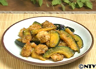 かぼちゃは塊のまま電子レンジで加熱しておくと、切りやすく、炒め時間も短くなり調理がラクです。